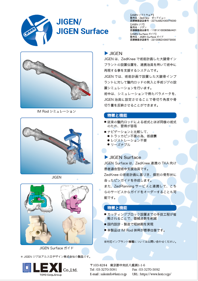 JIGENはCT画像を用いた人工膝関節置換術向けの3次元術前計画を行うシステムです。
